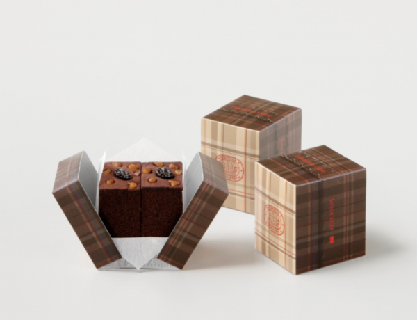 オランダケーキをイメージするブラウン系のタータンチェックでデザインしたパッケージになっております。
